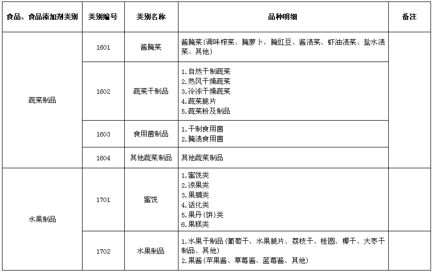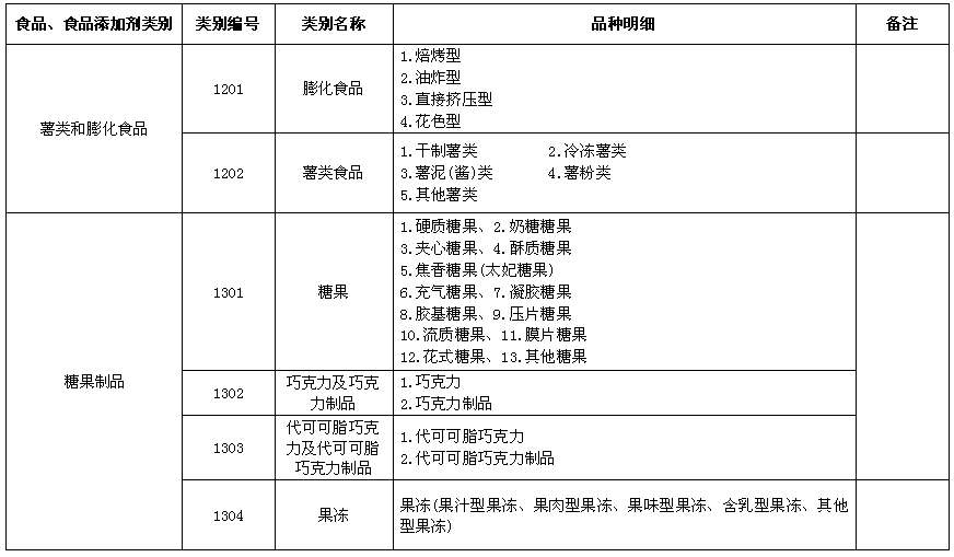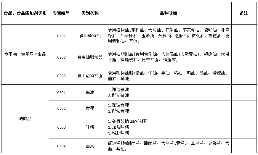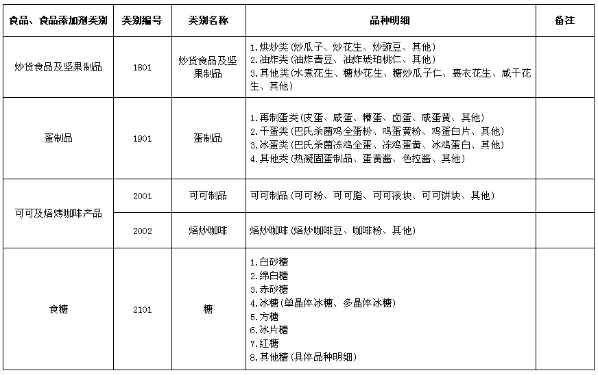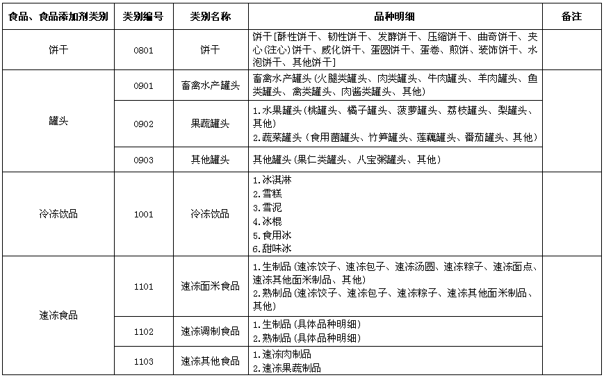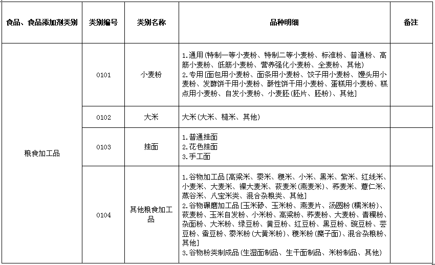 廣東食品生產(chǎn)許可分類(lèi)目錄